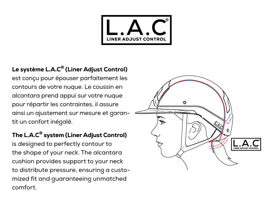 Le Liner est une pièce hybride, fabriquée de mèche et de tissu alcantara, très agréable sur la tête. Il est doté du système L.A.C, (Liner Adjust Control) permettant un ajustement parfait sur la zone arrière de la nuque, garantissant un confort inégalé.