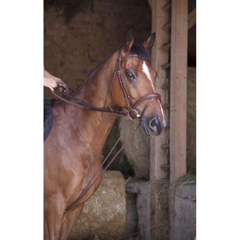 Rênes allemandes, cuir avec corde, avec mousquetons. Attache de sangle.